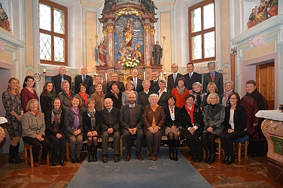 Wir sind eine engagierte Gemeinschaft, bestehend aus 26 Frauen und Männern, die sich Dienstag abends im Pfarrzentrum zum Proben trifft. Mit unseren Gesängen werden im Jahreskreis ca. 10 kirchliche Hochfeste begleitet.