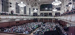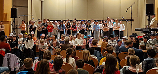 70 Männerstimmen füllten den Saal und erarbeiteten mit Referent Lukas Joham einen bunten Strauß an Melodien.