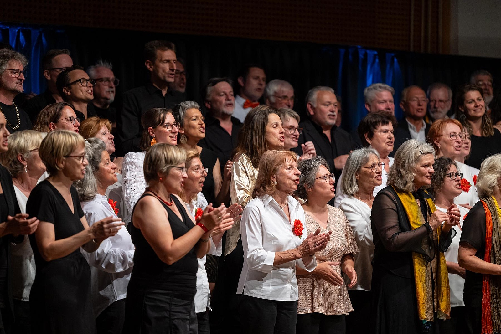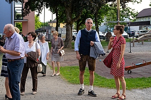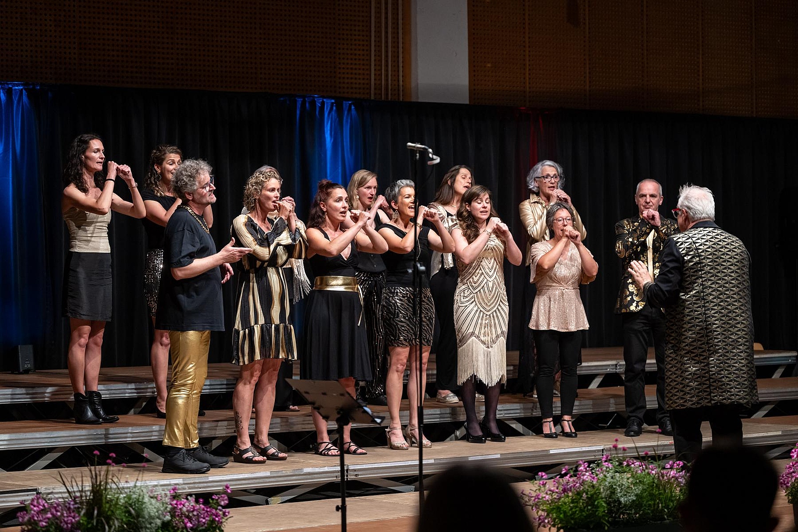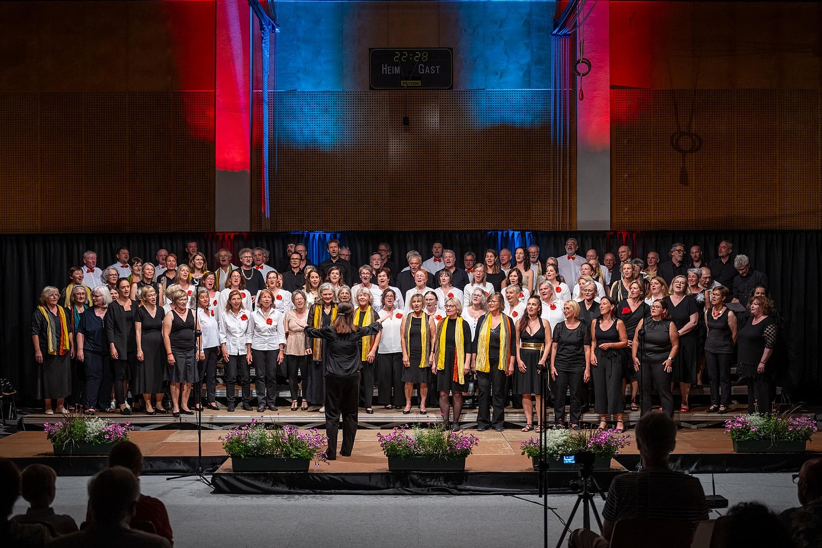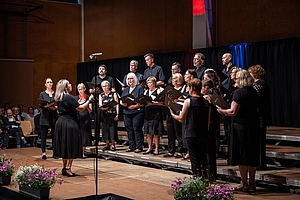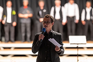 In der reich gefüllten Halle begann der Abend mit der Darstellung des ehemaligen Männerchores Concordia und dem Gesang des eigens damals komponierten Mottos. Durch den Krieg gab es leider wenig Männer und ab 1950 entschloss man sich auch Frauen im Chor aufzunehmen, woraus die heutige „Liedertafel Seekirchen“ entstand, die gleich als erstes den Reigen der darbietenden Gruppen eröffnete. Durch den Abend führte als Moderator Dominikus Forsthuber, der sehr unterhaltsam die mitwirkenden Chöre und Ensembles vorstellte und deren Stücke ankündigte. So entstand ein abwechslungsreiches und vielseitiges Programm, bei dem sich jede/r Zuschauer:in wiederfinden konnte. Man spürte die Freude an der Musik und die Hingabe, mit der die Sänger:innen dieses Fest musikalisch gestalteten.
