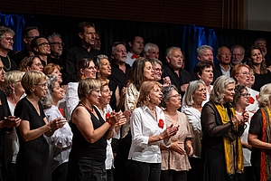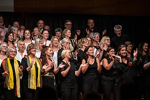 Der außerordentlich gelungene Abend endete mit einem gemeinsamen Gesang der Hymne des Lichtes: „This Little Light Of Mine“ das alle Sänger:innen und das Publikum zum Strahlen brachte.