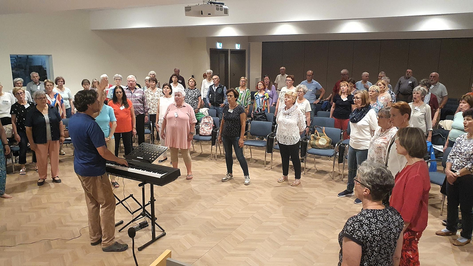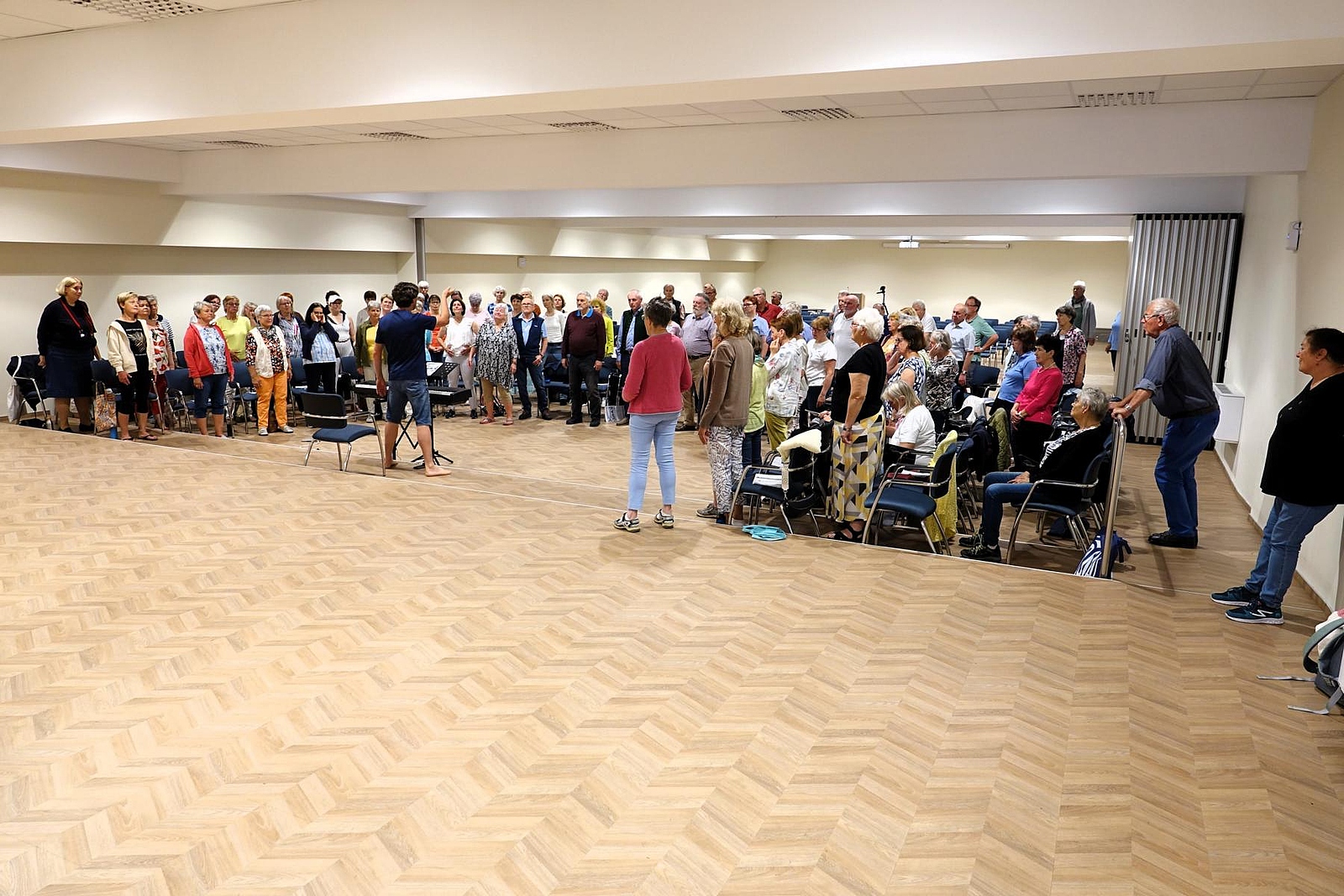 Für das Proben mit dem großen Chor (85 Sänger:innen) stand uns der große Saal im Adria Kongresni Center zur Verfügung.