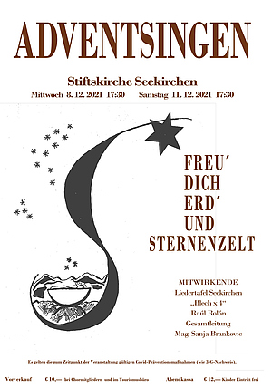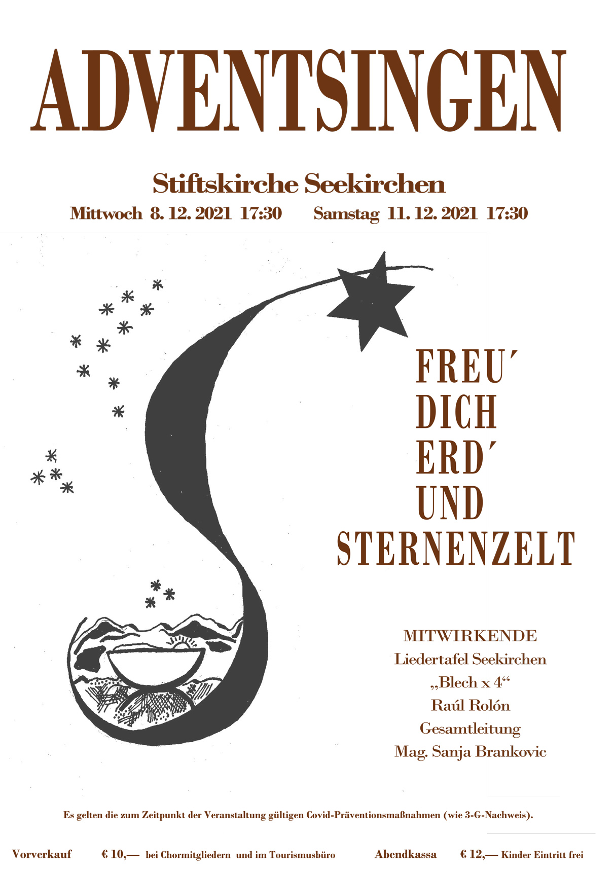 Die Liedertafel Seekirchen lädt zum Adventsingen am 08. und 11. Dezember jeweils um 17.30 Uhr in die Stiftspfarrkirche Seekirchen ein.