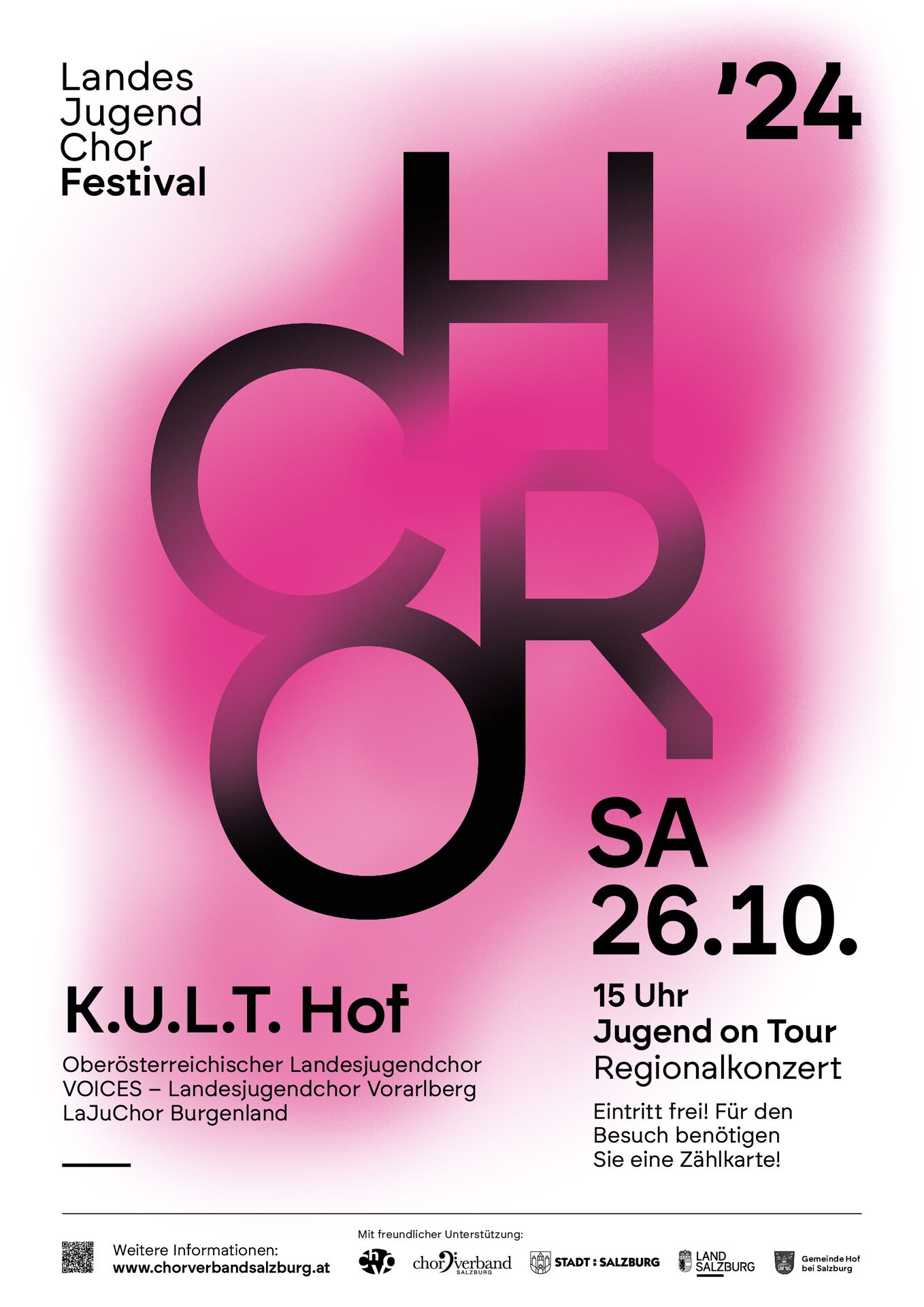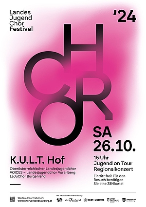 Vom 25. bis 28. Oktober treffen sich in Salzburg die Landesjugendchöre aller neun Bundesländer sowie aus Südtirol. Über 460 junge Sänger:innen werden bei diesem Festival zu hören sein. Fünf Konzerte finden in diesem Rahmen statt, eines davon im K.U.L.T. in Hof bei Salzburg.