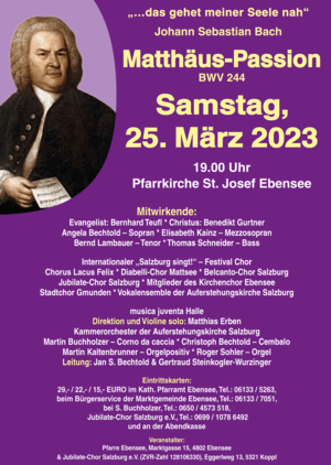 Evangelist: Bernhard Teufl * Christus: Benedikt Gurtner