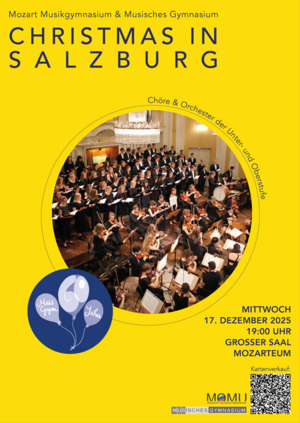 Beim Weihnachtskonzert „Christmas in Salzburg“ gestalten die Chöre und Orchester des Mozart Musikgymnasiums und des Musischen Gymnasiums Salzburg einen besonderen, abwechslungsreichen Abend im festlichen Rahmen anlässlich „60 Jahre Musisches Gymnasium“.